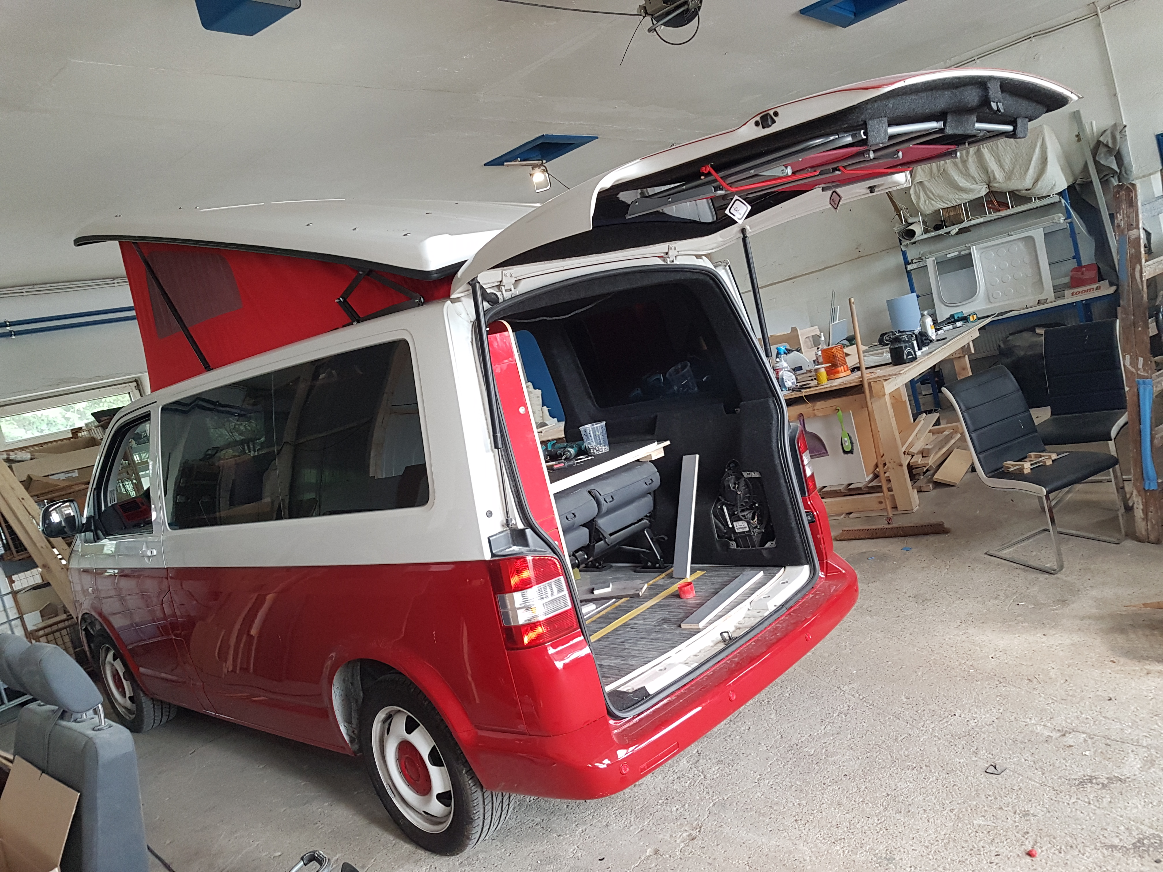 Aktuell bauen wir einen weiteren indiviuellen B4f StyleCamper im klassischen rot-weiß Design, auf Basis eines T5 kurzer Radstand um.